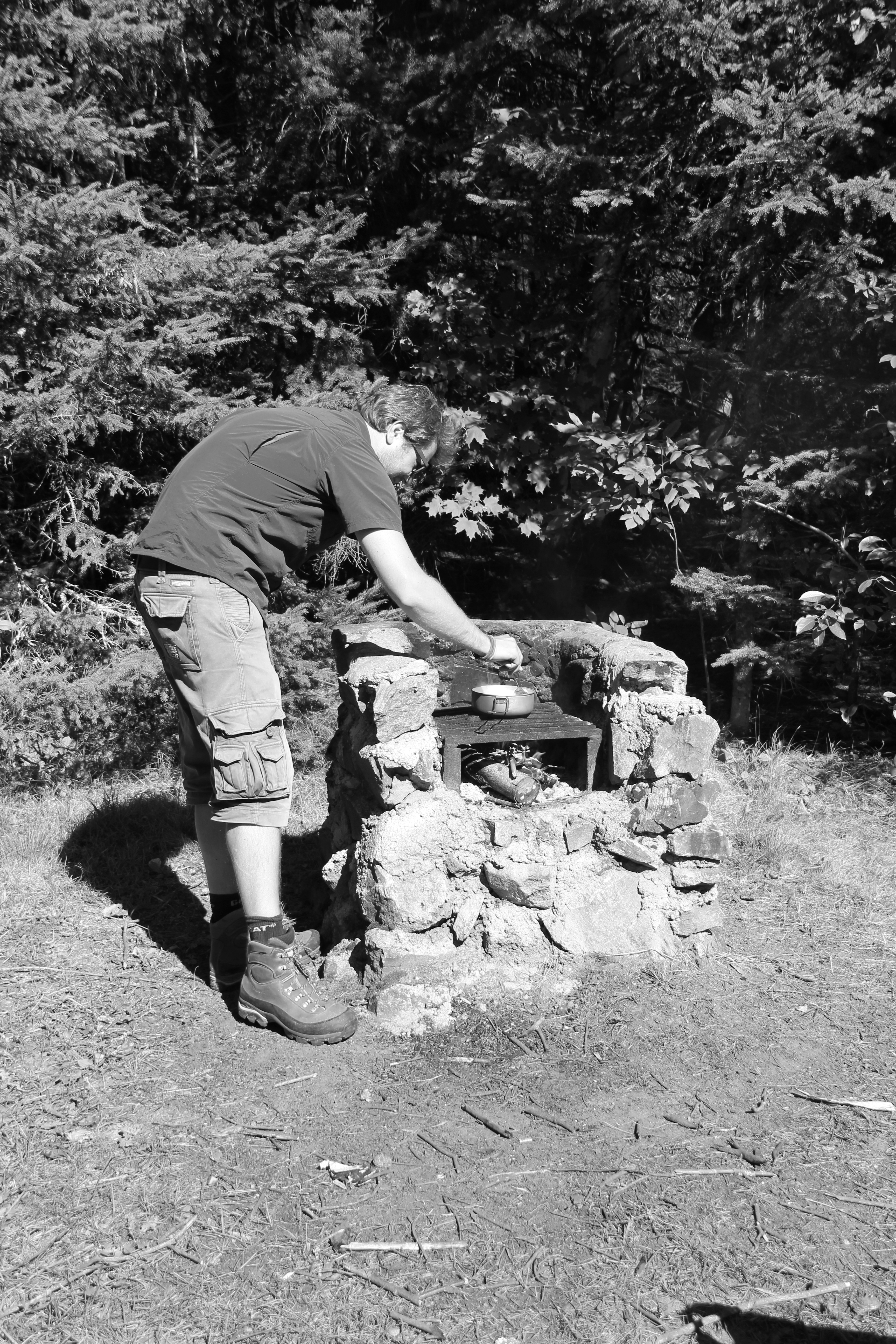 Het is hier prachtig, zonnig en warm weer, en daardoor besluiten we eerst nog enkele nachten te kamperen voor we onze geplande route naar Banff & Jasper National Park aanvatten. We komen terecht in een campsite midden in de natuur, even buiten Vancouver, en al snel blijkt dat wij hier de enige toeristen zijn. Het hoogseizoen is voorbij en momenteel verblijven hier enkel locals, die elkaar al jaren kennen. Ons mini-hikertentje contrasteert enorm met de gigantische, luxueuze RV’s, maar dat wekt blijkbaar sympathie op want de anderen besluiten om ons als het ware te adopteren: we worden van alle kanten bestookt met de vraag of we iets mee eten of drinken! De volgende dagen zijn enorm laid-back en we genieten van het lekkere weer, het zwembad, de mooie omgeving en de – alweer – vriendelijke en gastvrije Canadezen. We roosteren worstjes rond het kampvuur, eten bananaboats – banaan + chocolade + marshmallows geroosterd in het vuur – en zelfgemaakte koekjes, en we lachen met moppen en verhalen die we ons de volgende dag niet meer zullen herinneren. Op een gegeven moment wordt de acoustische gitaar bovengehaald voor een country-song, en ik voel me door een teletijdmachine teruggekatapulteerd naar de sixties 🙂 surrealistisch!